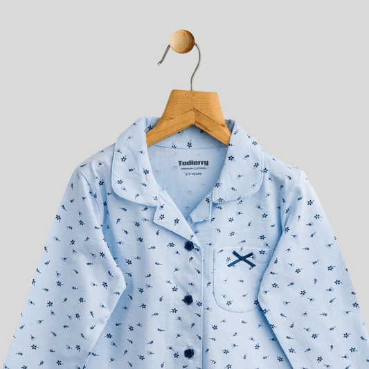 Girls Night Suit Blue Bow print Soft & Breathable 100% Cotton