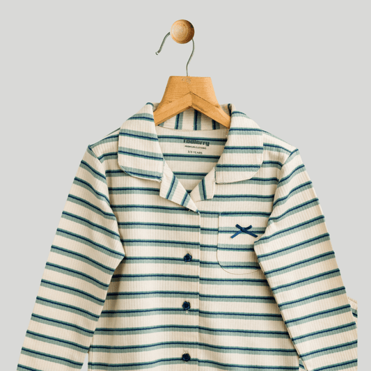 Girls Night Suit Green Strips print Soft & Breathable 100% Cotton
