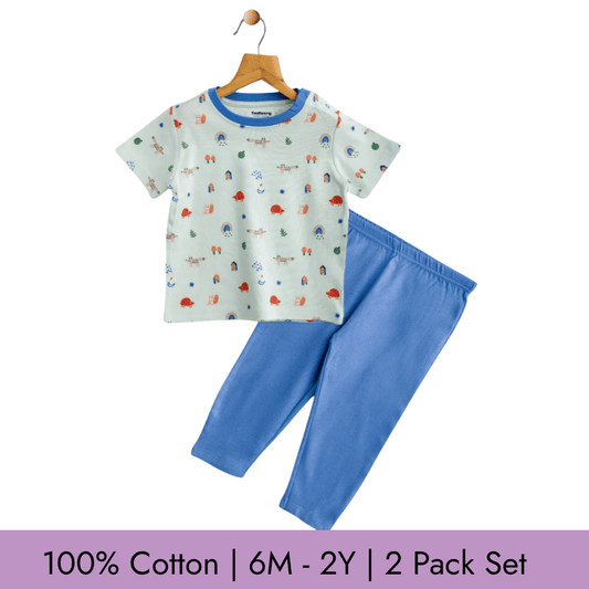 Unisex Pajama set Blue & Light green Soft & Breathable 100% Cotton