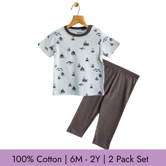 Unisex Pajama set Light blue Ship Print Soft & Breathable 100% Cotton