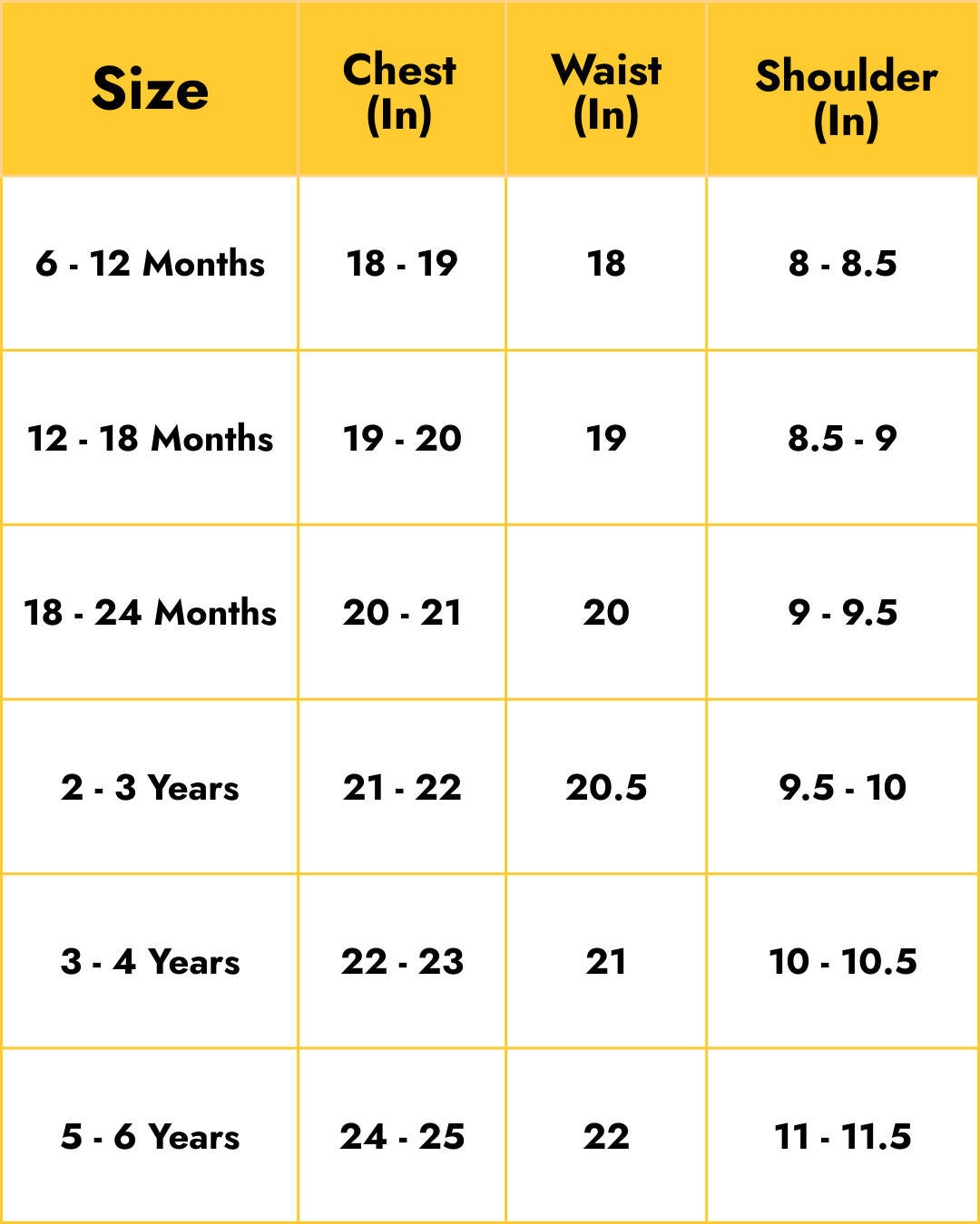 T-shirt Size chart