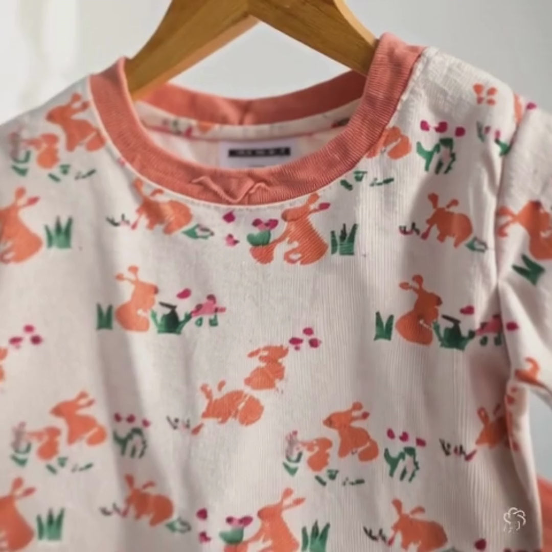 Unisex Pajama set Peach Bunny Print Soft & Breathable 100% Cotton